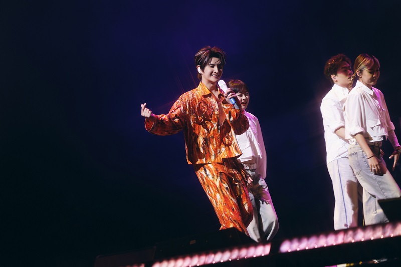 伴随着「那群傻瓜」的经典开场歌词,张远从幕后一路欢快小跑至舞台中央,一身橘色花纹镶钻look的他格外亮眼,引得全场粉丝尖叫连连。诚如舞台王者的他,用极具穿透力的嗓音和真挚浓烈的情感将歌舞演绎地淋漓极致,瞬间点燃开场气氛。