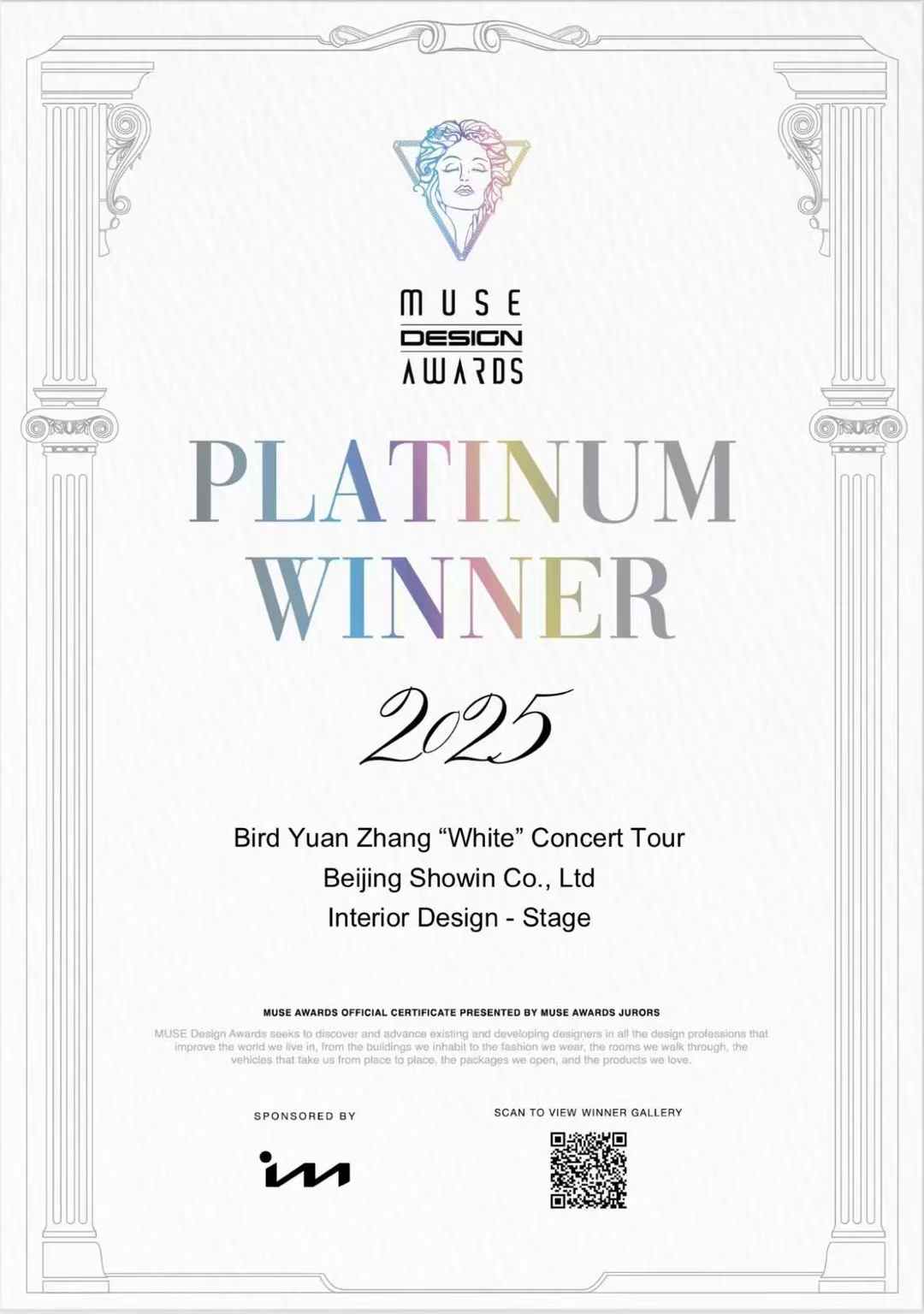 张远「白」巡回演唱会荣获「MUSE Design Awards」铂金奖,缪斯奖被誉为“设计界的奥斯卡”...
